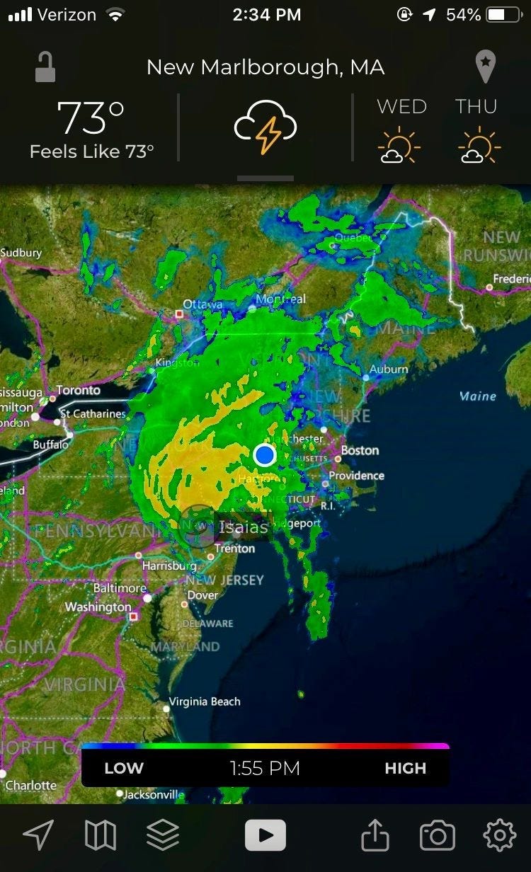 I recently left Massachusetts under the literal clouds of Tropical Storm Isaias. I’d not spent that much time in Massachusetts since 1990…and in the interim it seems Massachusetts (in fact all of New England) turned into Florida. It’s damned tropical here as evidenced by the glancing, but severe blow the region took from Isaias. But more on that at the wrap.